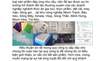 Công Ty TNHH Phúc Lai chuyên sản xuất và in ấn bao bì nhựa đạt tiêu chuẩn cao phục vụ cho các ngành như: dệt máy, thủy sản, thức ăn chăn nuôi, thực phẩm, giày dép, điện tử, đóng gói… Với lĩnh vực hoạt động chính là sản xuất và in ấn bao bì nhựa, cùng với kinh nghiệm nhiều năm hoạt động trong phân khúc thị trường này chúng tôi tự tin để đảm bảo rằng tất cả những yêu cầu của Quý khách liên quan đến lĩnh các vực hoạt động của chúng tôi đều sẽ được đáp ứng một cách nhanh chóng với chất lượng hoàn hảo và giá thành cạnh tranh nhất